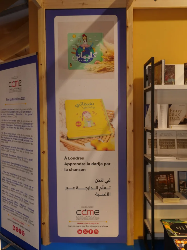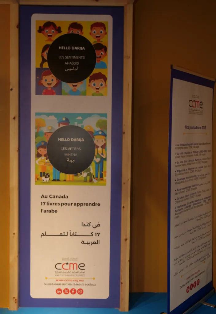 ومن بين أبرز المستجدات، قدّم المجلس سلسلة “Hello Darija”، المكوّنة من 17 كتابًا تربويًا يتيح للأطفال تعلم الدارجة المغربية بطريقة بسيطة وممتعة. كما عرض المجلس مجموعة من الترنيمات المغربية، وعددًا من القصص المصورة مثل: “خلية”، المنبوذون””، الرقاص الأخير””، إلى جانب علب ألعاب بطاقات تعليمية تتمحور حول موضوع “مغاربة مهاجرون ورحّالة”، وغيرها من العناوين الموجهة للناشئة